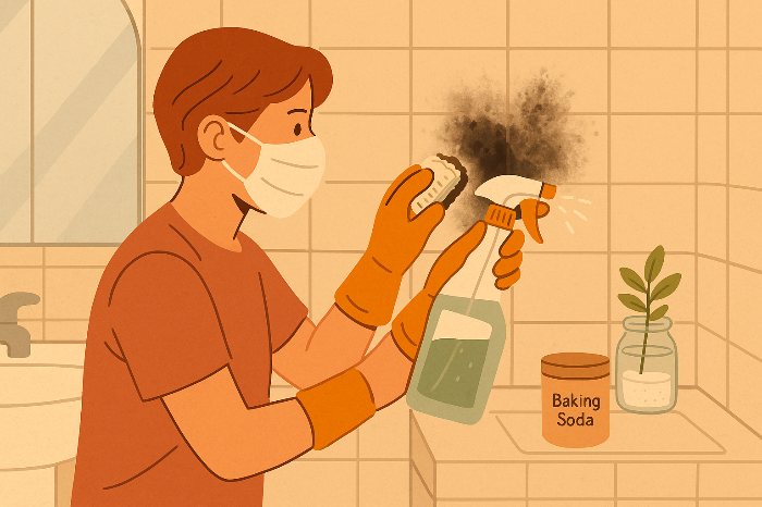 > 예: 물 500ml + 식초 100ml + 베이킹소다 2큰술을 섞어 분무기에 넣고 곰팡이 부위에 뿌린 뒤 30분 후 닦아냅니다.